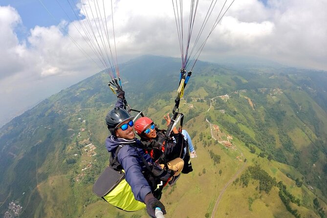 Disfrute de un emocionante vuelo tándem de 15 a 20 minutos con impresionantes vistas panorámicas del Valle de Aburrá, desayuno incluido para una experiencia completa.